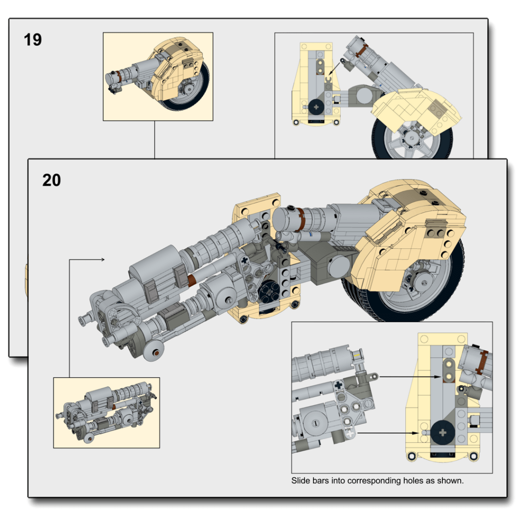 I’ve created instructions in different base colors (Tan, White, Black, and Blue) so that the model can be built in a variety of color schemes. Please see the main Outrunner page for renders of the available color options.